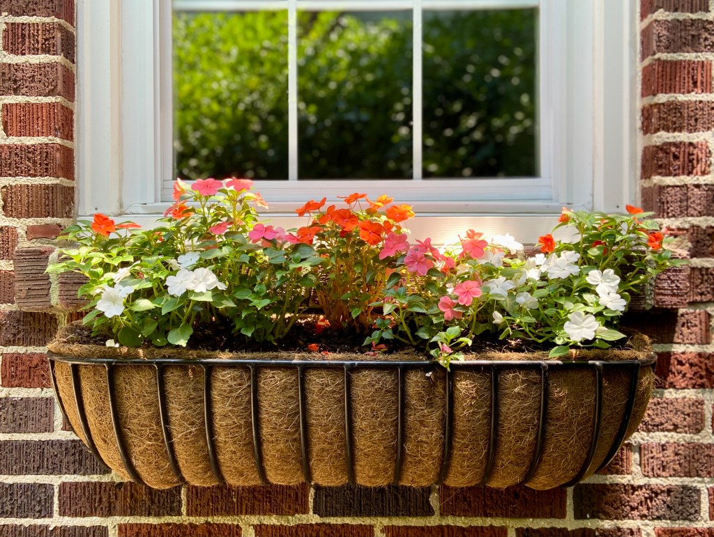 This time we chose Impatiens. I think they will fill in nicely. I do miss lifting the window and snipping my mint ;) but I need to water the newly planted pot in the sun, so it’s all good.
