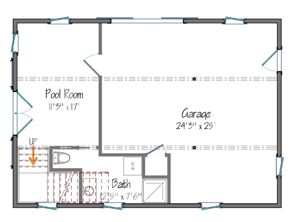 I love barn homes. There is a special ✨magic✨ about them. They can be as exquisite and fancy as you like or as warm and comfortable with a more relaxing vibe. This plan has a garage/pool room downstairs with a living space upstairs. The living space isn’t an afterthought, that’s for sure! So many windows – there is stunning light in every space! I could live there happily!