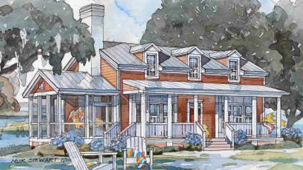 What a spectacular plan. Not too big, not too small, just right. Porches ALWAYS draw my attention, especially a screened porch! I think the dormers add such charm. This is another wonderful plan for Southern Living by Moser Design Group!