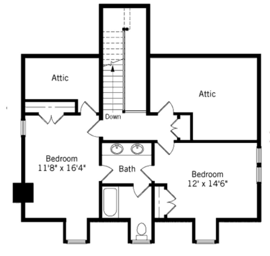 Upstairs there are two additional bedrooms with a shared bathroom. There is also a multitude of attic space, which is always nice! A Jack and Jill bathroom, which provides entry to both bedrooms and a private water closet make it especially useful. Another fabulous plan by Moser Design Group!