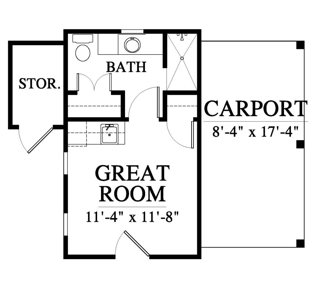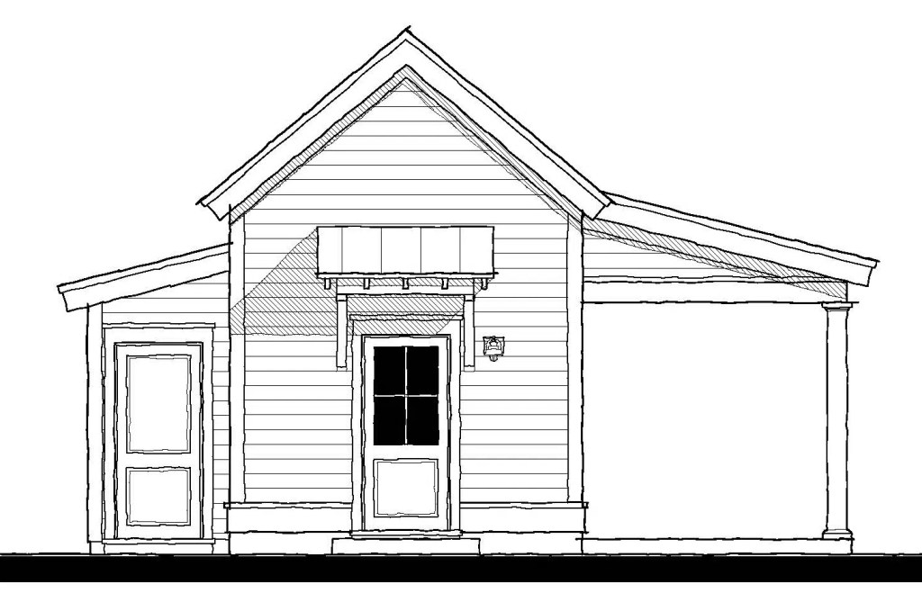This is the Guest Cottage (18409L2-G) plan by Allison Ramsey Architects. This plan is (a small, but mighty) 240 square feet. We don’t have a lot of guests, but if we did, this would be a dream. I would use it as a studio if I were an artist (it might get me back painting again, ha ha). Also perfect as a yoga studio, exercise room and for those of you who are working from home – what a dream! You could put some chairs underneath the carport and use it like a porch (if not parking a car).