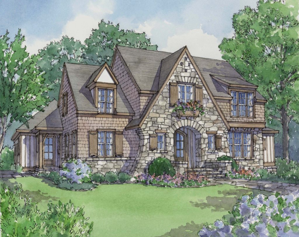 I love the lines of this house! It reminds me of some of the Tudor style homes in the neighborhood. I love the high pitch, the dormers, the quaint arch around the entrance – this is STUNNING. The mix of board and batten, shingles and stone really makes this house look like it’s been in the neighborhood for a long, long time. The two small windows on either side of the door adds so much charm. #likeafairytale