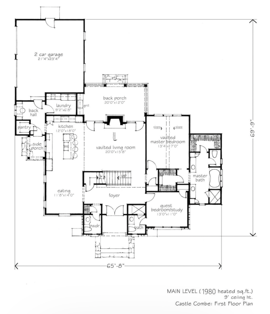 This is the Castle Combe house plan by Mitchell Ginn & Associates. This plan is 2,555+ square feet and has 4+ bedrooms and 4.5 bathrooms. There is also a basement plan (not pictured) that adds considerable space. It’s so nice to have options for exactly what you want. See the notations on square footage on each image.