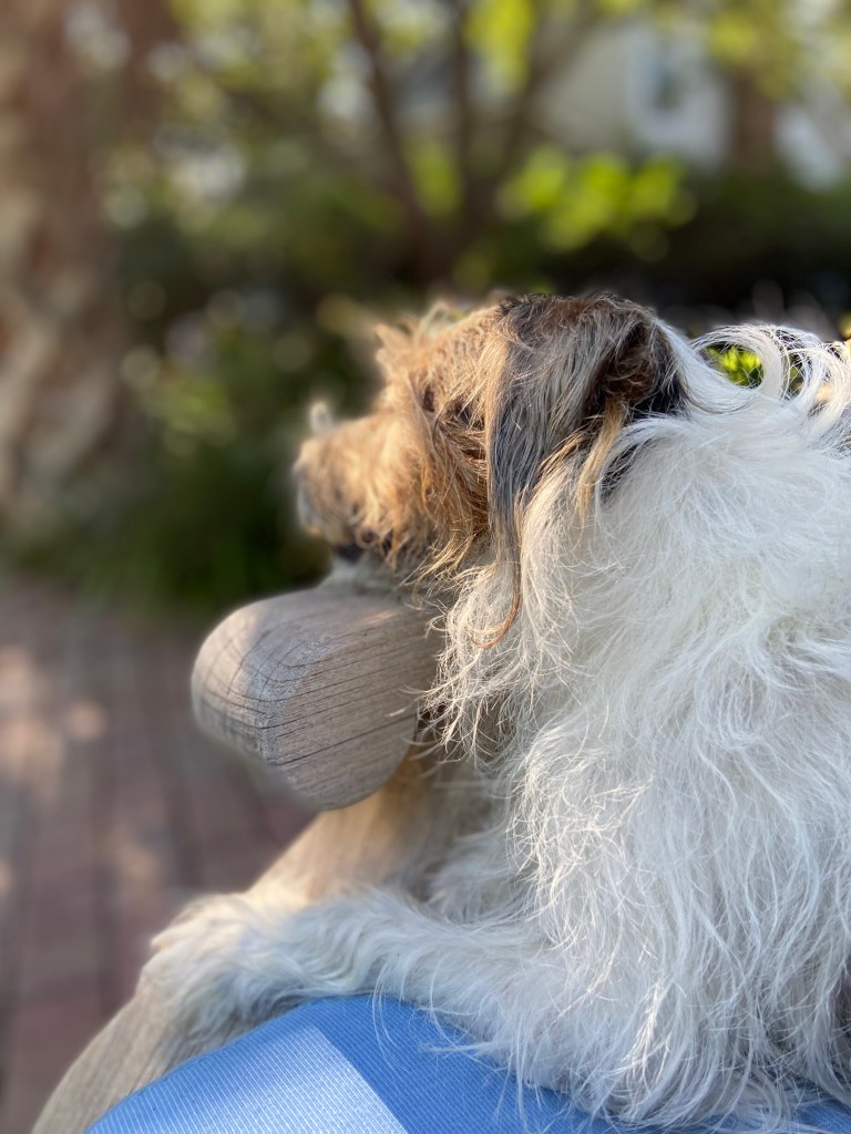 Charlie. He’s the sweetest beast. I took this photo last summer when I walked outside and there he was on the sofa cushions, head on the armrest. I’m not sure if he was deep in thought or if the sunshine had lulled him to sleep. One of his micro naps that gives him energy for hours, ha ha.