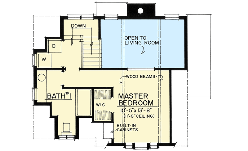 Master suite is upstairs with built in cabinets – love that feature. As well as a walk in closet and bathroom. Washer/dryer is also located upstairs. There is a section that is open to the living area. In the winter, let the heat rise, right? Sometimes, smaller plans make more sense – especially for those downsizing. Master up and down gives you flexibility.