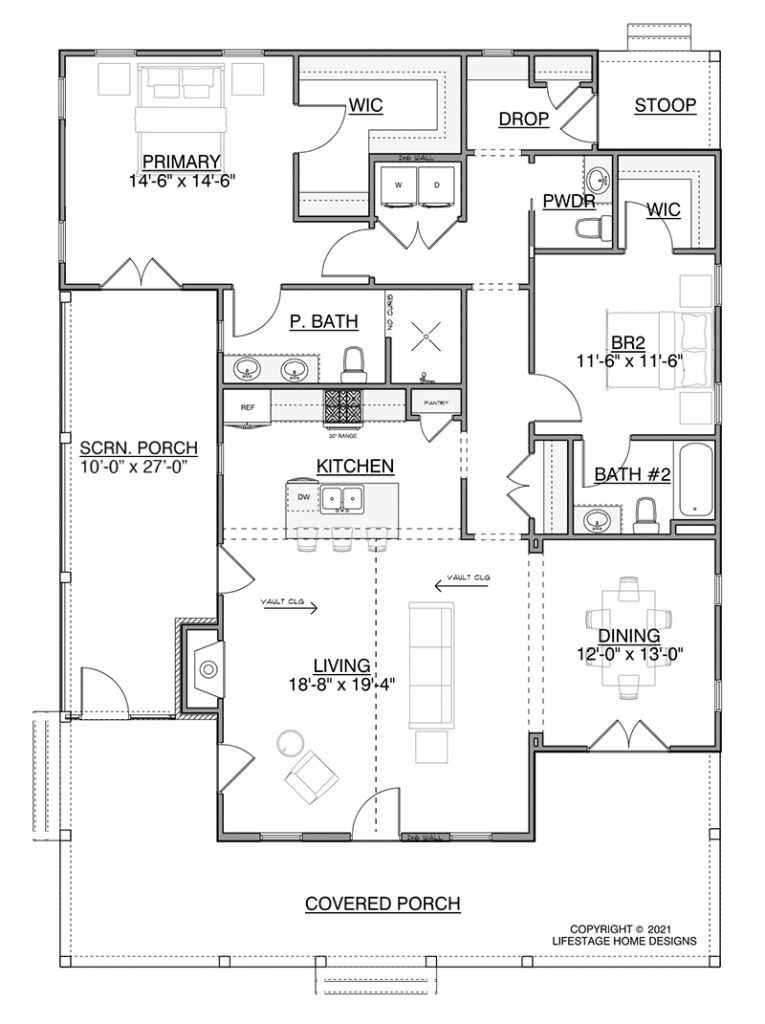 This is the Shiloh Creek house plan by Lifestage Home Designs, LLC – this plan is in the Southern Living house plan collection (SL-2079). This plan is 1,640 square feet with 3 bedrooms and 2.5 bathrooms.