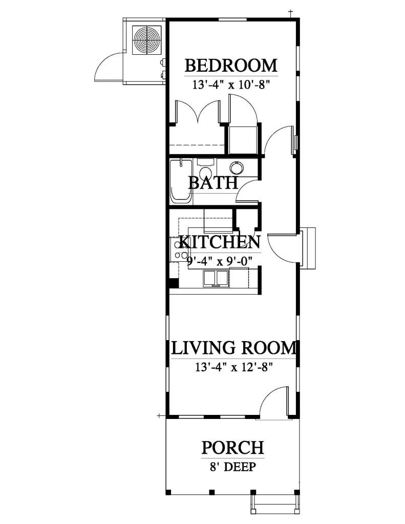This is the Duck Blinds plan (C0050) by Allison Ramsey Architects. This plan is 588 square feet with 1 bedroom and 1 bathroom. As you saw in the first image – it has a wonderful front porch! When you click on the Duck Blinds link you’ll see images of the real plan, both inside and out, which is such a big help!