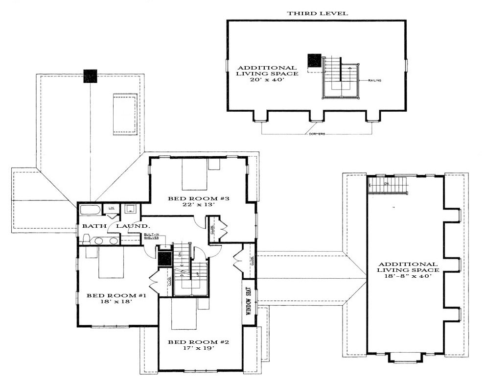 The upstairs of this plan has three additional bedrooms, one bathroom, as well as another laundry space (if needed) – Classic Colonial Homes can work with you to modify and make this plan all yours! Check them out…
