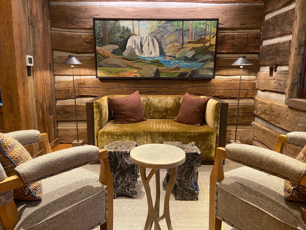 The Swag (Waynesville, NC)! This photo was taken at the Welcome Center before you reach the main building. You walk into the main room with a roaring fire, and stunning decor. I could easily move in and be happy forever and ever. Every single element has been thought through and carefully decided upon. Including this gorgeous painting by artist Mariella Bisson, who I’ve featured in the past. It was a thrill to see her paintings (there are a few at The Swag) in person – so much so that we stopped by Momentum Gallery (Asheville, NC) on the way home.