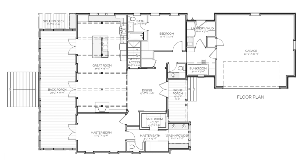Two very cool things I noticed. Stairs to access the attic WHICH I LOVE! We live in an older home and have a pull down staircase. If we had a little more room, having a dedicated staircase to the attic space would be ideal AND you could use those stairs for exercising as well, ha ha… the other thing that Lake and Land does with a lot of their plans – they incorporate a safe room. If you look you’ll see the master closet is a safe room + a closet. A safe room is the perfect spot to plant yourself during a severe storm, hurricane, tornado, etc. Brilliant idea and thinking ahead with design is always key for staying on top, right?