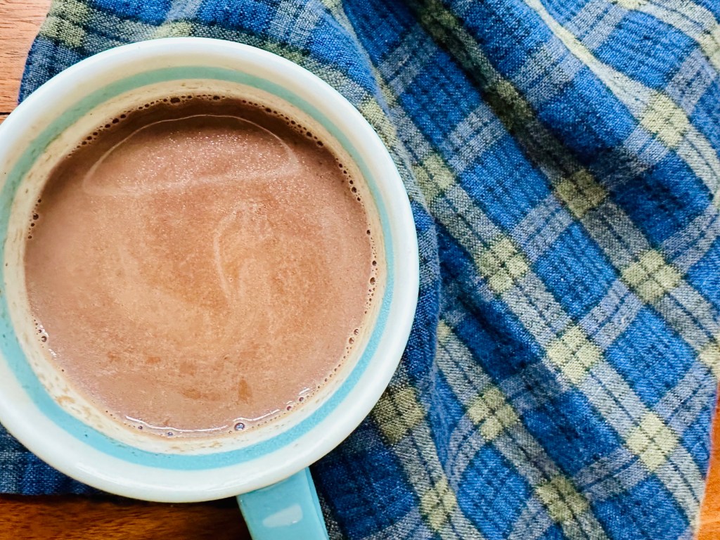 Add remaining ingredients (remainder of milk, sugar, vanilla extract, cinnamon and chocolate chips) and heat over medium heat until the chocolate is melted, about 2 minutes. Stir frequently and be careful not to boil it! Serve immediately. You can top with (real) whipped cream or marshmallows. We drank it as it was and it is perfection!