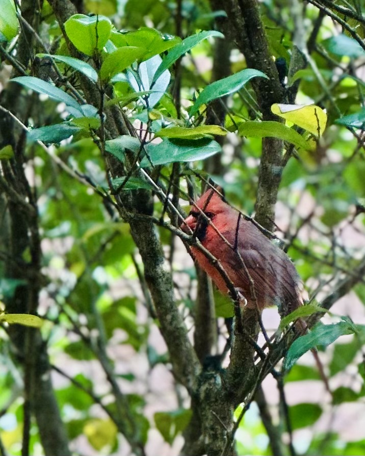The cardinals have been nesting in our shrubs for the last few years. They’re only a few feet away from our sunroom windows. What hard workers! In addition to the cardinals, the azaleas are blooming already, at least some of them, and they’re gorgeous!