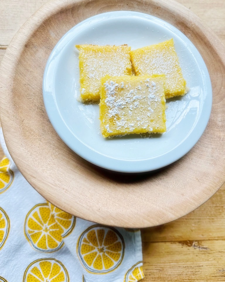 Give this recipe a try, it’s SO GOOD! Be sure to use fresh squeezed lemon, using bottled stuff would not result in tasty lemon bars. No. Way. Also, I’ve read many people say to bake this in a glass baking dish, not metal. Otherwise you the metal baking pan can give the lemon bars a metallic. I would think at some point in my life I did that and don’t recall a metallic taste, but then again, maybe I did use glass. Ok, y’all, here’s the recipe: