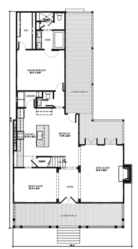 This is the Pendleton house plan by Lew Oliver for Southern Living. This plan is 2,329 square feet with 3 bedrooms and 3.5 bathrooms. The Pendleton plan has a lot of covered porch space which makes it extra special. I think for me, I would opt to screen the back porch off the living room so that the doors to the living room could remain open to catch a breeze on nice days.