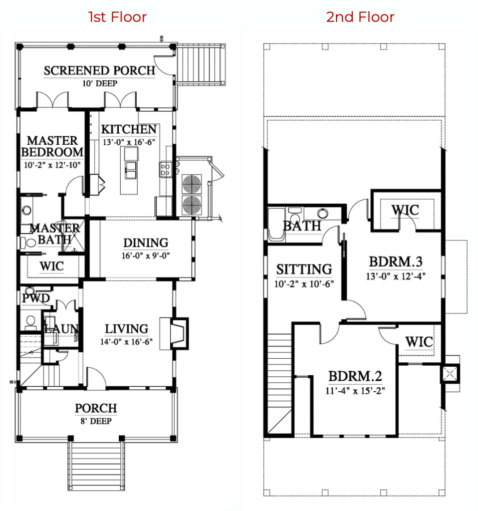 This is the Sequoyah house plan by Allison Ramsey Architects. This plan is 1,801 square feet with three bedrooms and two bathrooms (plus a powder room). Let’s take a peek…