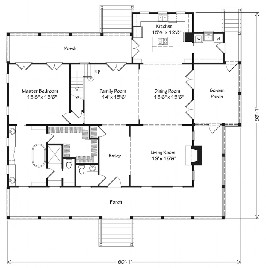 I’m often on a search for homes that would fit within established neighborhoods. A home that would look like it has always been there. Not always, because I do like so many styles from traditional to modern. This plan struck me as a delight with the all encompassing porch that could be a wonderful area to spend time. It’s like a cozy hug to be up on your porch greeting your neighbors. What a delightful place to be!