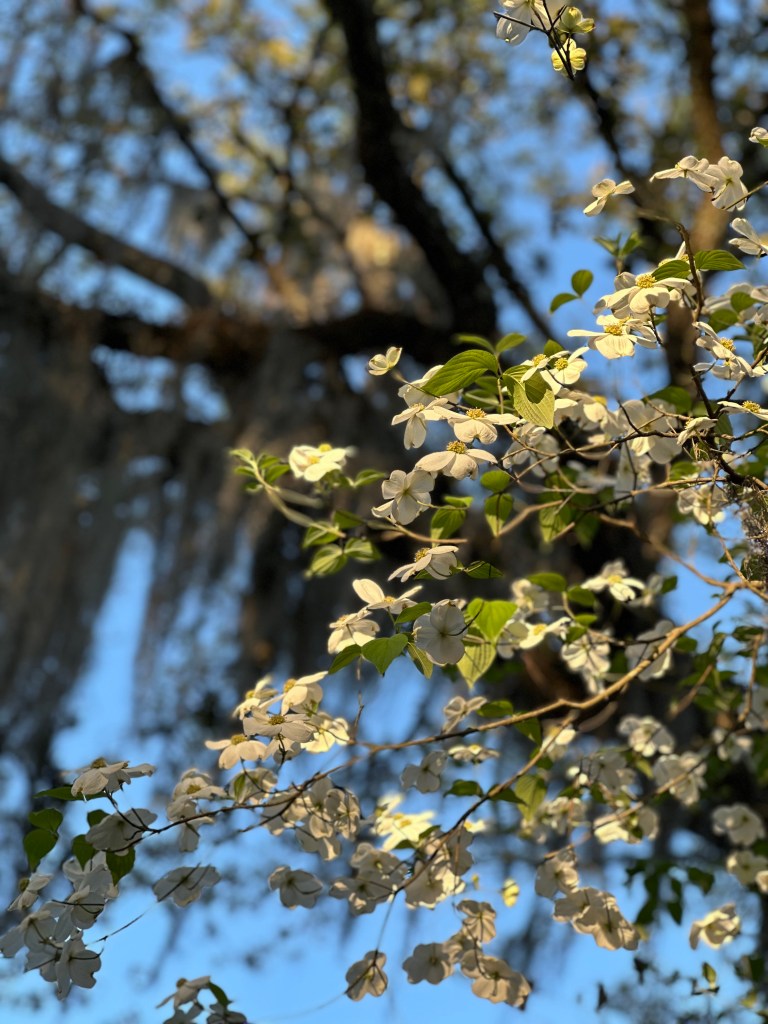 Good Friday, a day of reflection… I looked through my recent photos for one that fit the bill and this dogwood with the live oak and Spanish moss in the background was perfect! The photo was taken a few days ago with the sun starting to lower giving off the pretty, warm light.