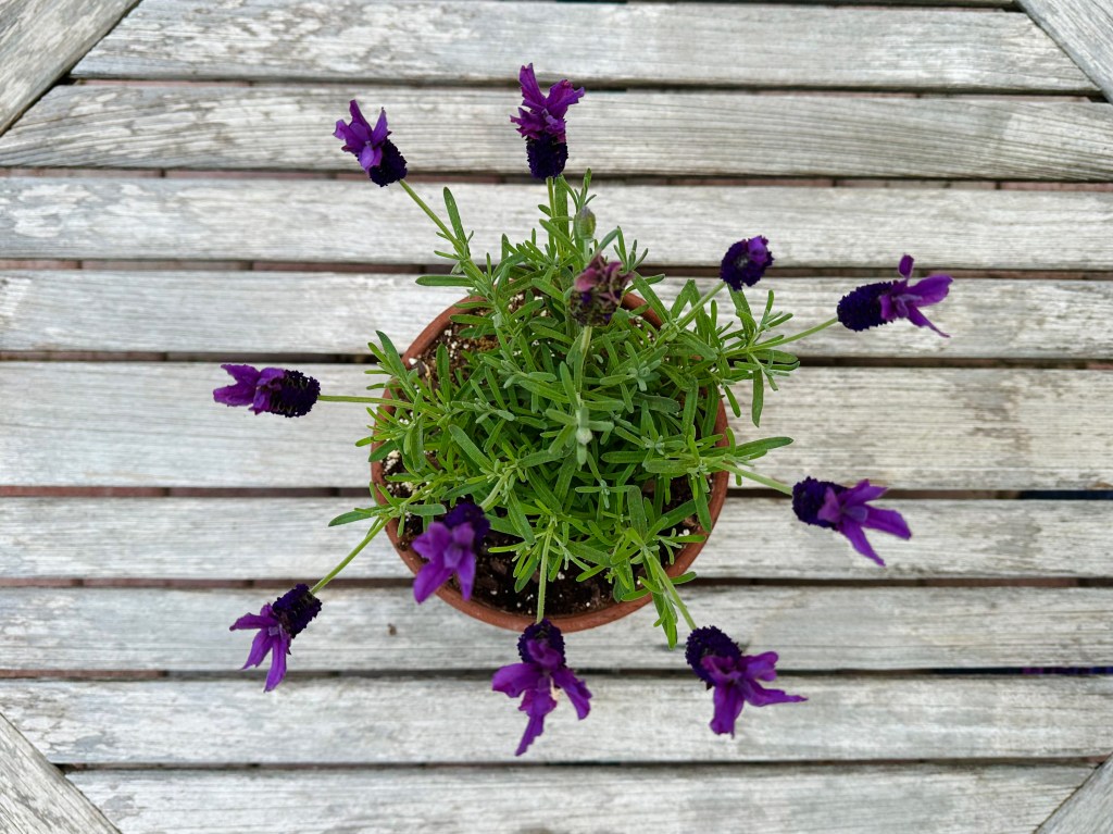 Isn’t this the most stunning spectacle of lavender you’ve ever seen? The colors so vibrant, the plant so healthy and it just keeps blooming and blooming. We have the pot in the sun and when the light hits it – whoa, it takes your breath away… and the scent! #IYKYK!