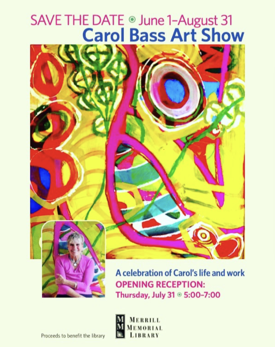 The show has begun at Merrill Memorial Library (215 Main Street, Yarmouth, Maine) – so if you’re in the area or can be in the area, this is a show not to miss. The opening reception will be held on Thursday, July 31, 2025 from 5-7PM. Carol loved life, her family, art and oh, did she love color!! For those of you who can make it to the opening reception, “Please wear your brightest colors”! I love this!