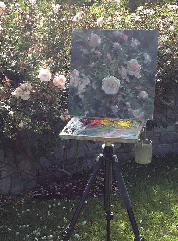 Jason’s roses are amazing, as seen in this painting! I also love the square canvases that are all the rage right now. It seems like a modern twist to a classic.