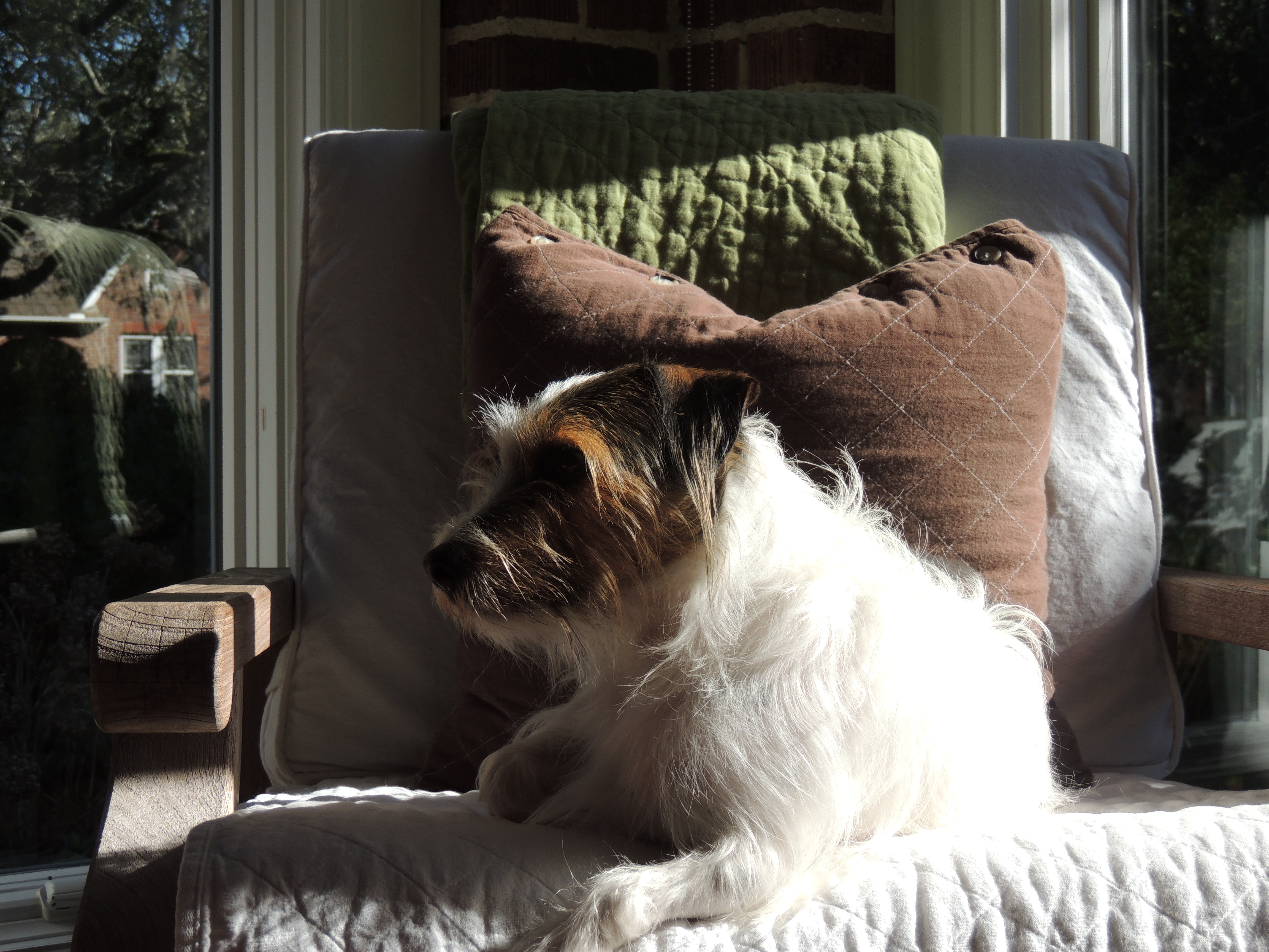 Elizabeth Pollie. Amazing person. Stunning artist. Just look at this image of Charlie, our Jack Russell… in his favorite position looking out the sunroom windows… watching for those “kitty cats” that make him run from room to room having a big time!… Elizabeth had seen this photo and asked if I could send it to her, if it would be OK to paint a study of him. Absolutely! She called them studies. I called them masterpieces! Each one was so spectacular it truly boggled the mind. Clearly Charlie and Elizabeth have a connection!
