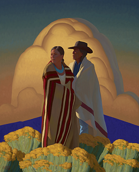 Logan Hagege. An iconic superstar Southwestern artist. You see a painting and the style is all Logan’s… you can tell one of his paintings a mile away. Such history and emotion come from them. This piece, above, Reconnected is part of the CHANGING LIGHT – Solo Exhibition at Trailside Galleries in Jackson Hole, WY.