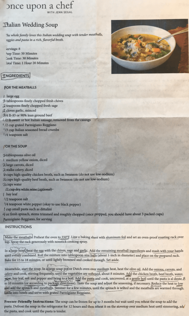 Continue reading “Italian Wedding Soup (by Once Upon A Chef, Jenn Segal)!”