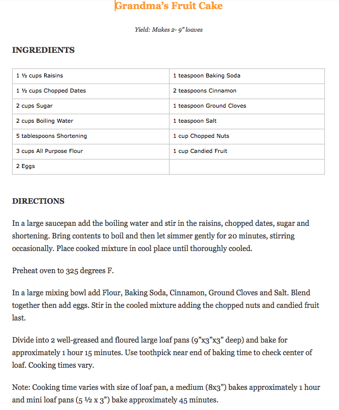 **My grandma made a note on her version… she placed a pie dish with water in the oven at the same time as the fruitcake to keep it moist, good thinking!