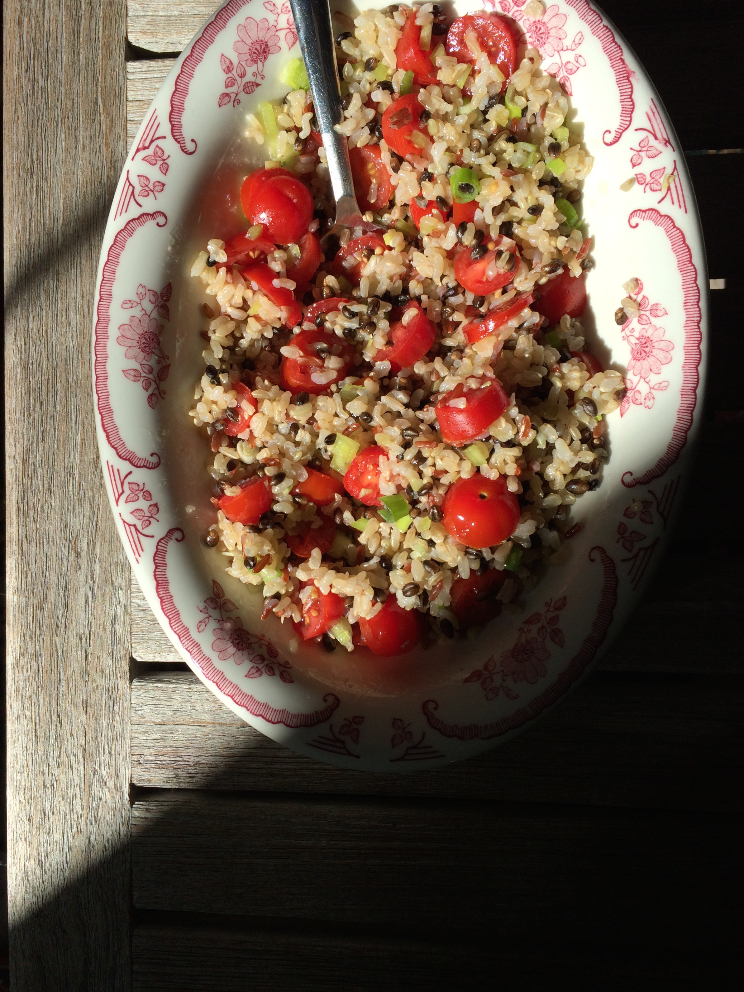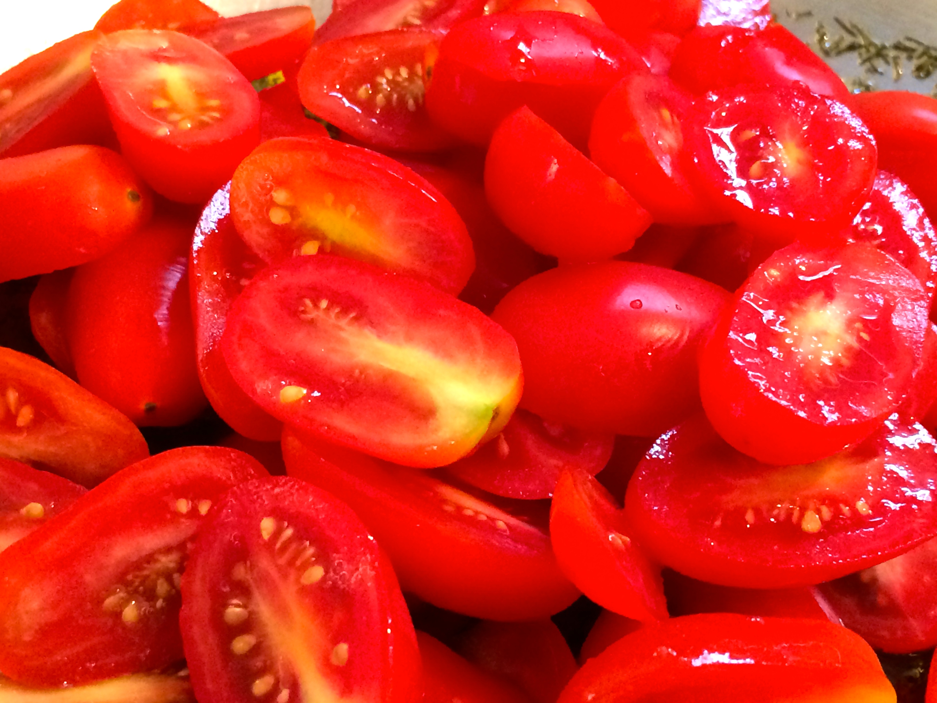 - 3-4 tomatoes, cut in half horizontally, squeezed to remove excess juice, roughly chopped, to yield approximately 3 cups chopped tomatoes