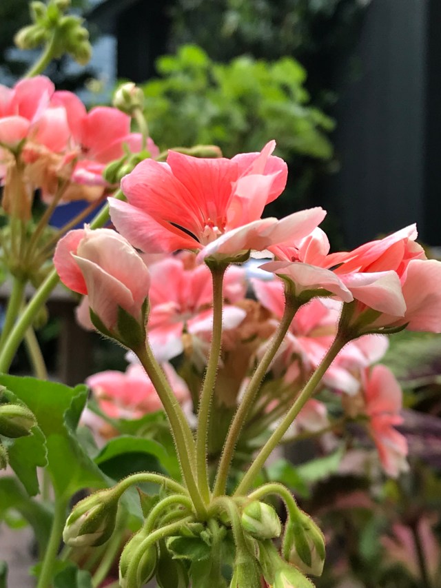Early Spring, I bought several geraniums from our local Harris Teeter (grocery store). They were a deal at $5 each. They’ve since been repotted into larger, prettier pots and they are doing miraculously!