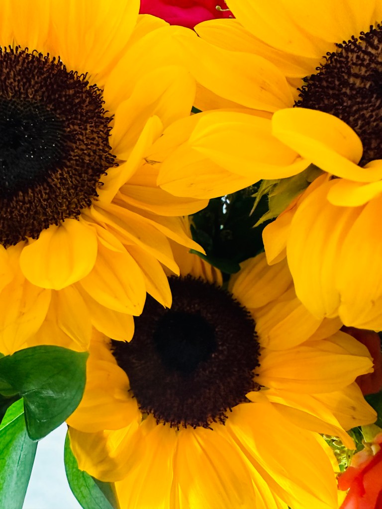 I like to post something uplifting for the weekend. Sunflowers are like big rays of sunshine, they’re happy and they last. My husband bought me flowers for our anniversary, and they lasted a good two weeks! Sadly, they’re now departed – but we enjoyed every second of them while they were here! While there is no sunshine in Charleston at the moment (much needed rain! 🙌), these will suffice!
