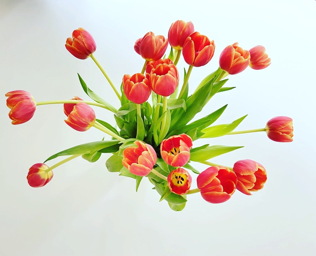 Tulips. They’re just so elegant. I love how they move with the light. They close up and stand tall at night and open to the sun following it ever so slightly. The colors are gorgeous, the pinks, oranges, yellows and whites are my favorites. Even a small bunch is so pretty!