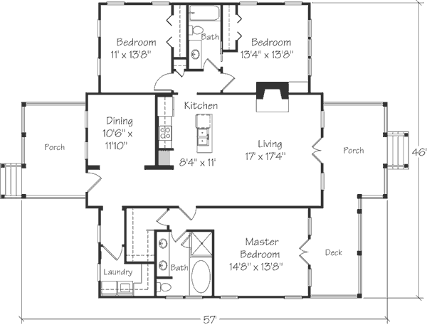This floor plan is roughly 2300 square feet with 3 bedrooms and 2.5 bathrooms. It is in Allison Ramsey’s “Carolina Inspiration Book I” Page 35 (C0058).
