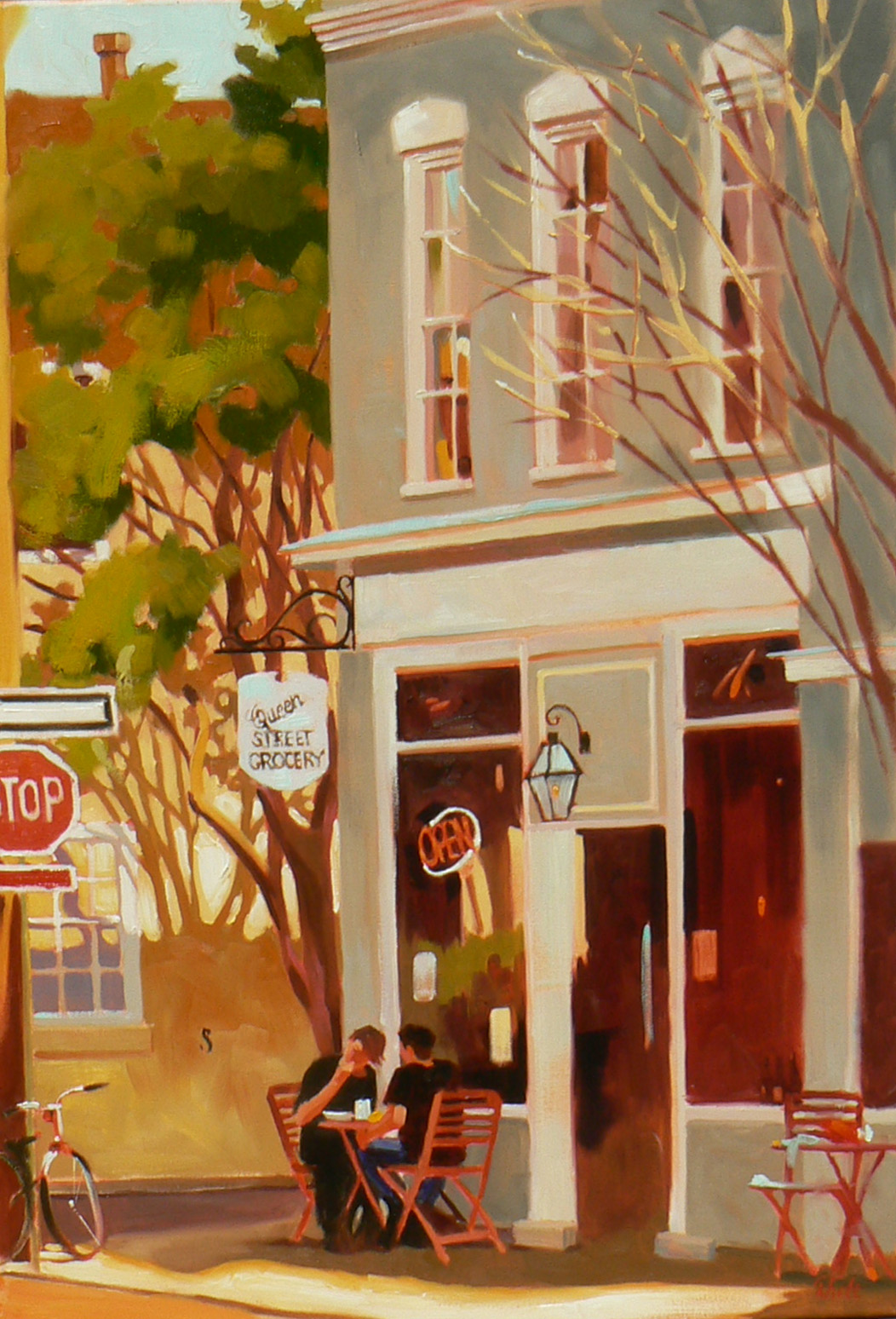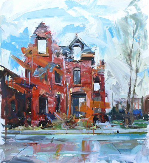 This is a sweet painting. The light hitting the tip of the building is fabulous as is the water. Nice deliberate brush strokes. I love the story about how Monique got started… I think we should all give art supplies to kids… imagine how many would be fabulous artists like Monique one day!? Check out Monique’s website, it’s full of fabulous paintings!