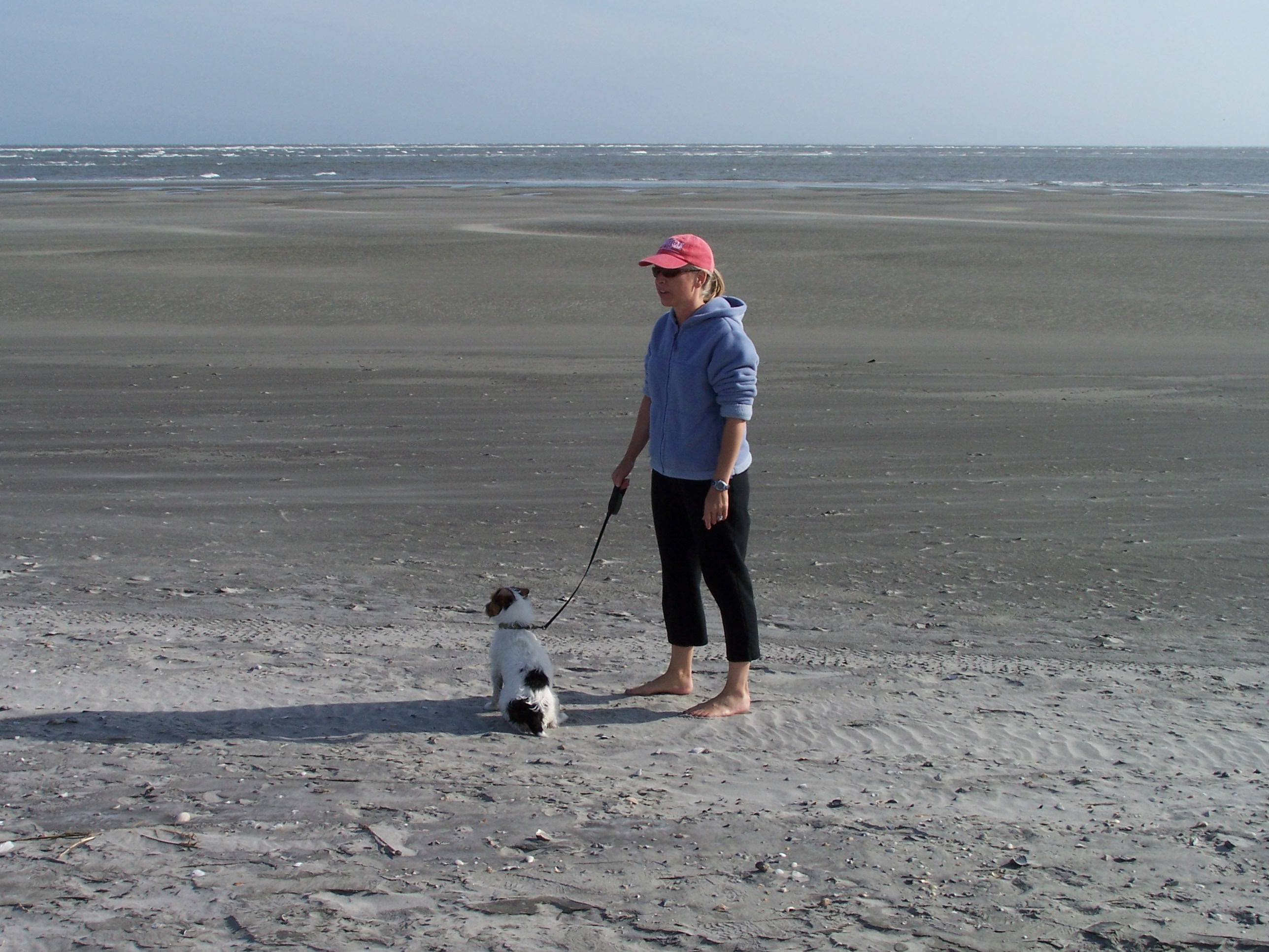 Well, with the weather here in Charleston last week in the 70-80 degree range I think it’s almost time to hit the beach! Not so much to lay out in my teeny weeny polka dot bikini (HA!), but to take Charlie out walking… Fred and I like to take him usually in the spring and fall, but we missed the fall this year, and it appears spring has sprung, at least for this week! This photo was taken back in April 2011 when my parents visited. We headed out for a walk on the beach at Sullivan’s Island after a delightful lunch at Poe’s Tavern (best hamburgers!).