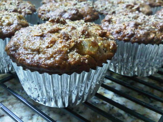 Sometimes you need a quick and satisfying breakfast, not something that takes too long… it’s nice to be able to grab something and head out the door! These muffins are good alone, or paired with a fruit smoothie or a greek yogurt, mmmmm. They are filled with good things BUT they don’t taste “healthy”. The good thing about this recipe is that you can put whatever fruit you like in it… I made it pretty much as the recipe indicated. I used greek yogurt because it’s what I had (which boosts the protein a weee bit), I didn’t have wheat germ so I just added more flax. Next time I’ll probably use dried apricots or cherries instead of pineapple since the pineapple is so sweet… fresh blueberries would also be good! We eat some and freeze some, they’re great heated in the microwave for a few seconds!