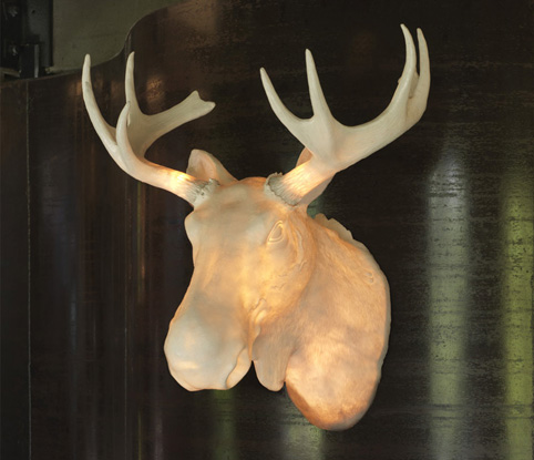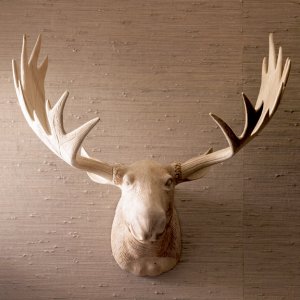 Restoration Hardware has some fabulous moose antlers in cast resin. They use antlers that were naturally shed to cast in resin. Great in a library, hmmmm??