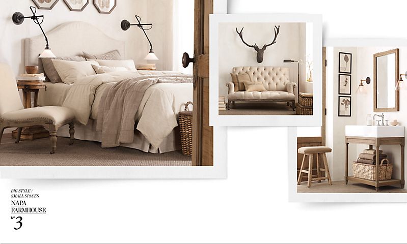 Last year when the massive Restoration Hardware catalog was delivered I slowly devoured it. Dreaming of each and every piece… but W A I T ! Your home is your castle, right? BUT if you’re home isn’t LITERALLY a castle most of these pieces simply will not fit! This year I’m happy to report there is the big Restoration catalog that is such a pleasure to browse through, as well as a catalog devoted to the Outdoors… and now… one for small spaces, WOHOO Restoration Hardware! Each and every piece is classy without a doubt. These catalogs can easily double as coffee table books!