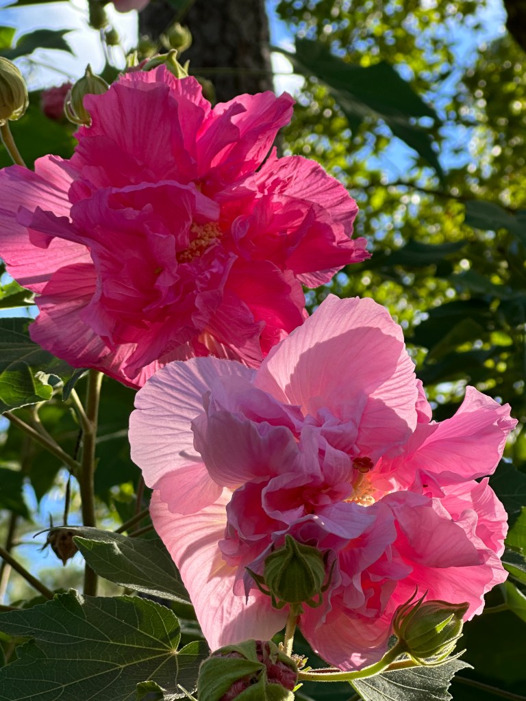 This reminds me of the tissue paper flowers I made in grade school, does anyone remember those? I took this photo in Summerville, SC a few weeks ago. I saw on a post from last year that I took a photo of the same stunning bush of flowers, but a month earlier. They were darker in color and just as stunning. I did a reverse Google search to figure out what it’s called…
