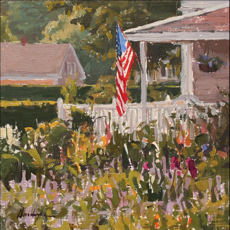 On a side note… I wanted to select a painting appropriate for today, and a house with a flag seemed to be spot on. I’ve always loved this little 6×6 painting. This was done by artist Frank Gardner. Just love his work… check it out! I LOVE a flag in a painting, it draws me right in!