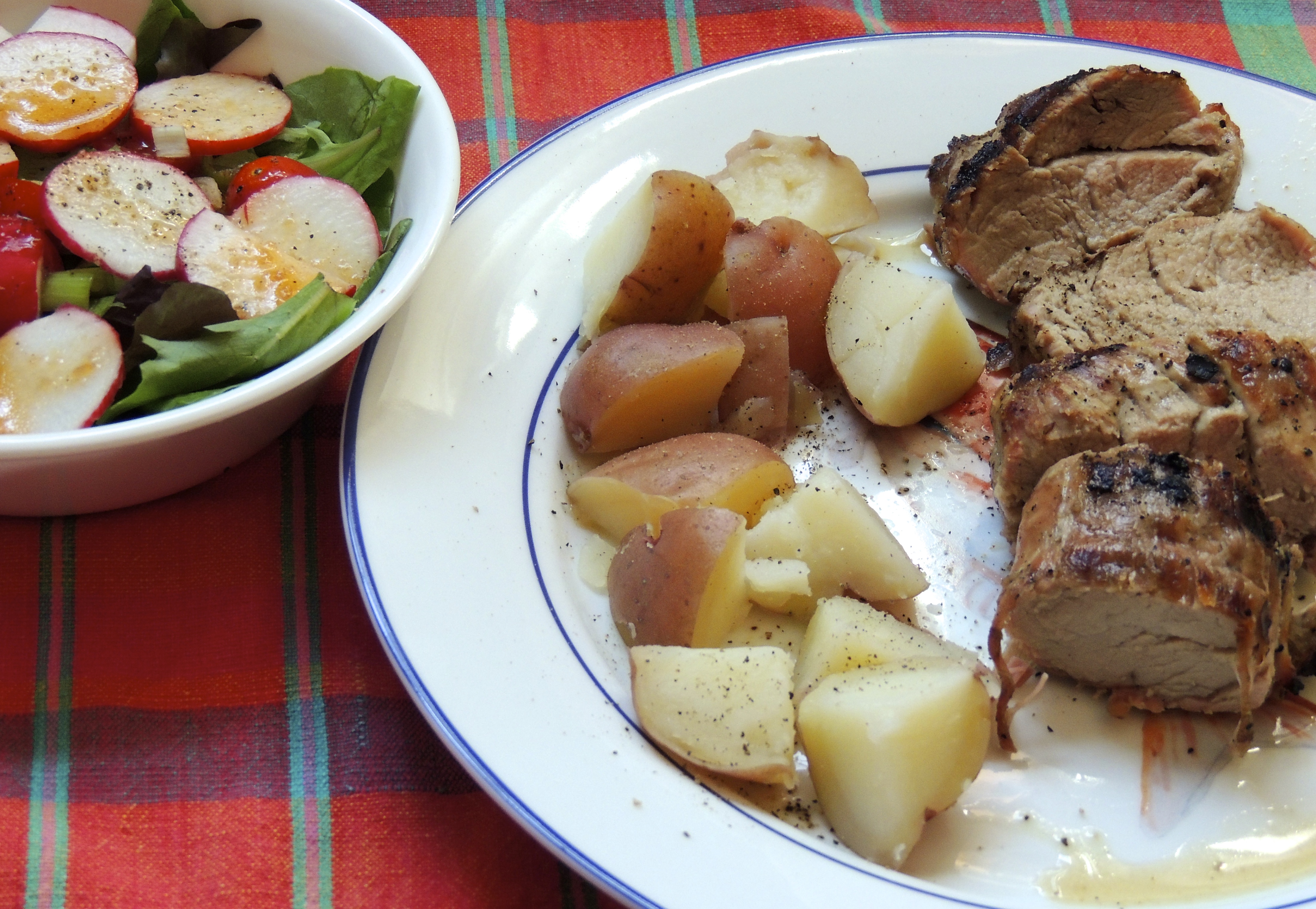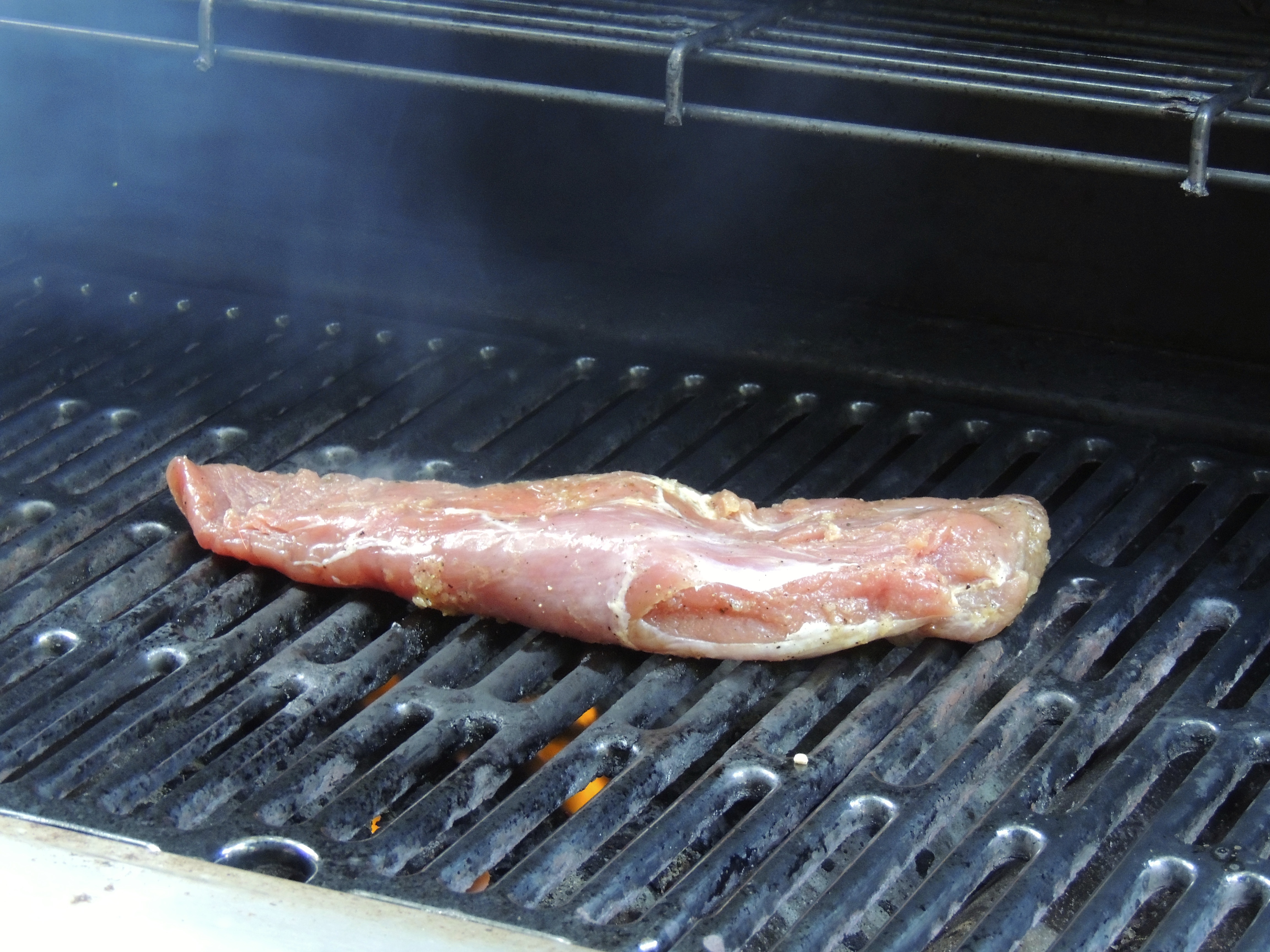 Once the grill is hot, oil the grates with olive oil. We used paper towels dipped in olive oil and used tongs…