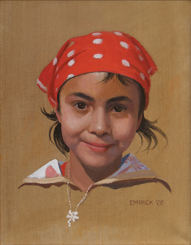 What a sweet face. Polka Dot Princess, perfect name for this painting! I love how the face is so detailed yet there is no background… For some reason I just love the shadow underneath her collar. Great painting Frank!