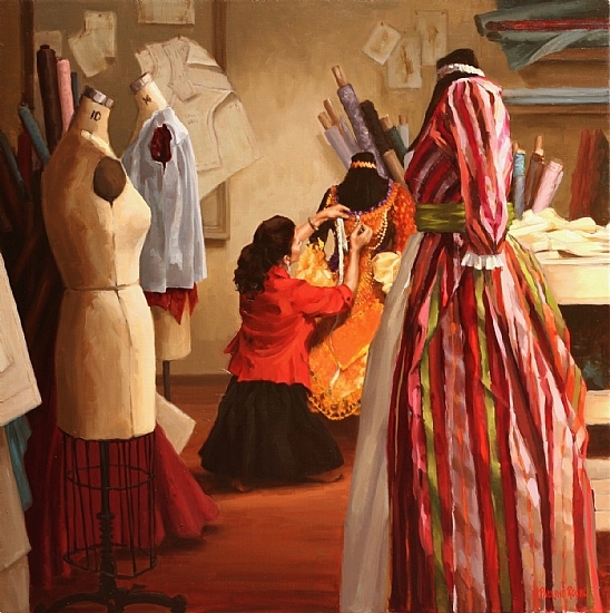 His mastery of the female figure, the clothed figure especially, is brilliant. He has drawn inspiration from the very old tradition of romanticism and symbolism. His absolutely lavish surfaces, color and lighting are in harmony with his expressionistic brushstroke, application and modeling of light and shade.