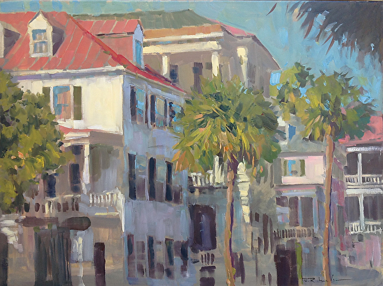 My husband and I met Jim at an art walk at Galerie on Broad in Charleston, SC. Jim was giving a demo that just blew us away. Every piece of his work was fabulous. If you’re in the Charleston area I highly encourage you to check it out. STUNNING. Charleston work that isn’t typical. He’s got a nice edge that makes it different and fresh. (Image above from Galerie on Broad).