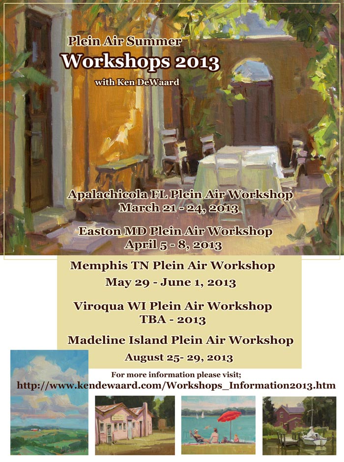 Hey, this is the perfect opportunity to mention Florida’s Forgotton Coast Plein Air Invitational – Ken will be participating in this plein air event, and from the photos of last years work WHOA!… so be checking his website after the event is over for the latest pieces!