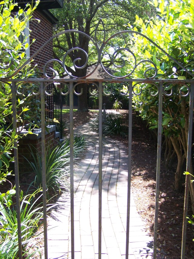 Gorgeous! Fred moved some monkey grass that we had behind the pool and planted at each end of the walkway to lead your eye to the path, and not the straightaway to the garage! It worked beautifully!