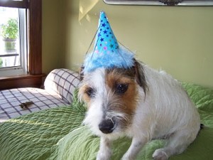 I can’t seem to come up with a good excuse, other than the fact that time got away from me… I have good intentions but I get stuck in my everyday routine and completely forget the important things sometimes. Argh! It’s our little beast’s two year birthday today. I really wanted to find him a nice gold chain, maybe with a peace sign or something, to hang on his furry little chest. Hee hee… Can you imagine. Kind of like something for a furry man maybe in the 70’s with the shirt unbuttoned low (mid-life-crisis look), ok, maybe a little too disco… humph! I think we’ll order him a box of bully springs that he loves to chew on and call it a day! I need to find his birthday hat, it’s here somewhere. Last year I was in Michigan, so it was a challenge for me to get it on AND snap a picture in the nano second that he left it on… We love this little guy. Things started out a little rough. He’s never been bad, just so afraid of everything. Of me, of Fred, of the outside, the fire hydrant, the grass and on and on… slowly (and with the encouragement of cooked chicken pieces) he’s learned not to be afraid of things… he’s definitely NOT afraid of other dogs. He’s the official Walmart greeter, he greets every dog no matter where we go, it’s the sweetest thing to watch. Now people, hmmm, it’s a slow process and they definitely have to EARN his affection. This can take time, but it’s worth the wait. He’s a special little beast. And WOOHOO CHARLIE, it’s raining today… NO WALK IN THE HEAT TODAY! (Don’t feel too sorry for him, he gets walked practically before the sun comes up and then he flies into the backyard where he jumps up on the teak table waiting to be hosed off to cool down. This dog has so much personality… He is accepting cards and gifts, hee hee… HAPPY 2 YEAR BIRTHDAY CHARLIE!