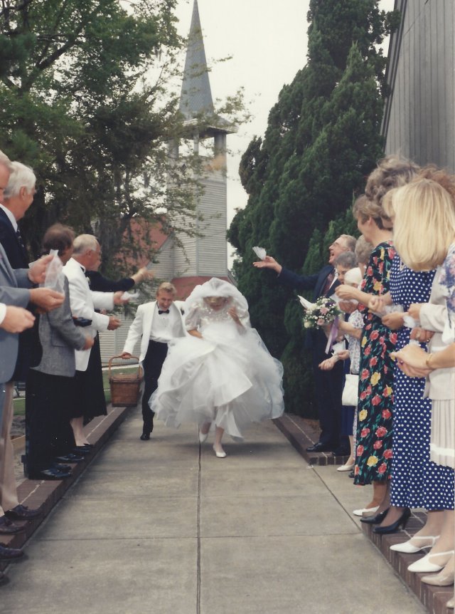 Ohmygosh, we had the time of our lives on our wedding day! This is us, big hair and all, NINETEEN YEARS AGO today! Whew does time ever fly. Right when you decide to forget about finding the one true love in life do you happen to walk a friends dog right up to their very feet. What a happy day that was. I knew almost immediately that Fred was THE ONE. It was his gentle demeanor, the way he listened when I talked, the way he was truly HAPPY to see me. Fred is everything in the world to me, he’s my ONE TRUE LOVE, and I will be forever grateful!