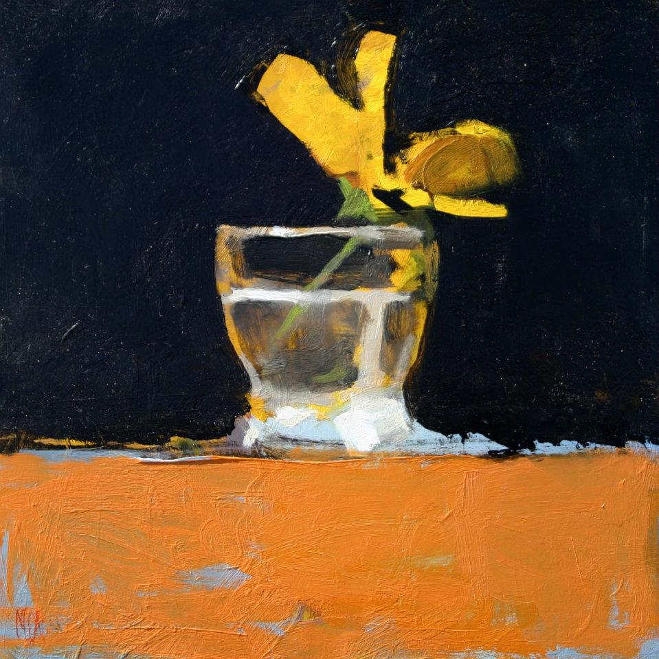 Mark D. Nelson. A fabulous artist and I wish I knew how I ran across him… I wrote his name down in my day planner, as I do any artist who pops up who’s work I truly admire and I want to feature. Is this striking or what?! I am loving that GORGEOUS orange, the delicate yellow flower POPS against the dark background. This is fabulous on so many levels! Mark has the innate ability to add a modern twist to a painting. I would like to be able to paint like this. But I know me. I would cover up all the color from underneath that I love peeking through… I do it every stinking time. One day…