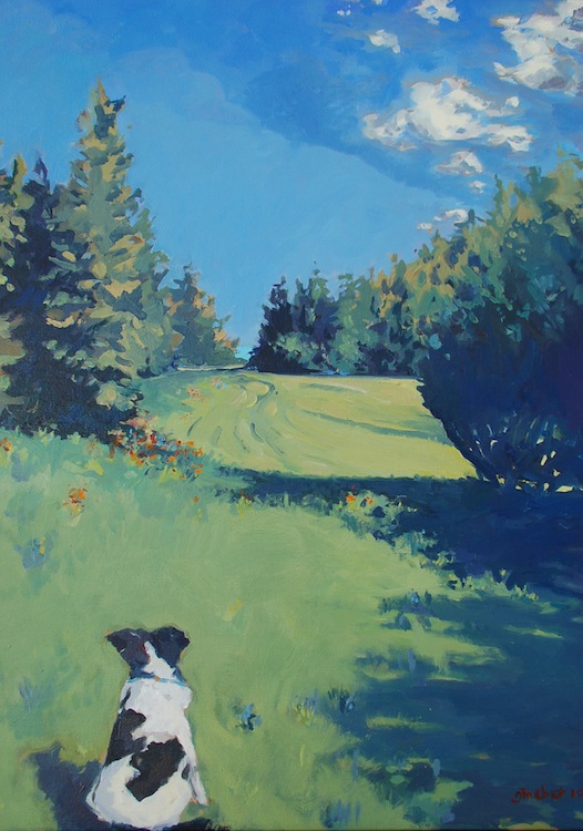 I love this happy little dog… Coco is one lucky pup to have this kind of room to run around… Charlie would run until he couldn’t run anymore (if being at the dog park is any indication!). What a sweet painting. You can feel the distance, the light, the happiness…